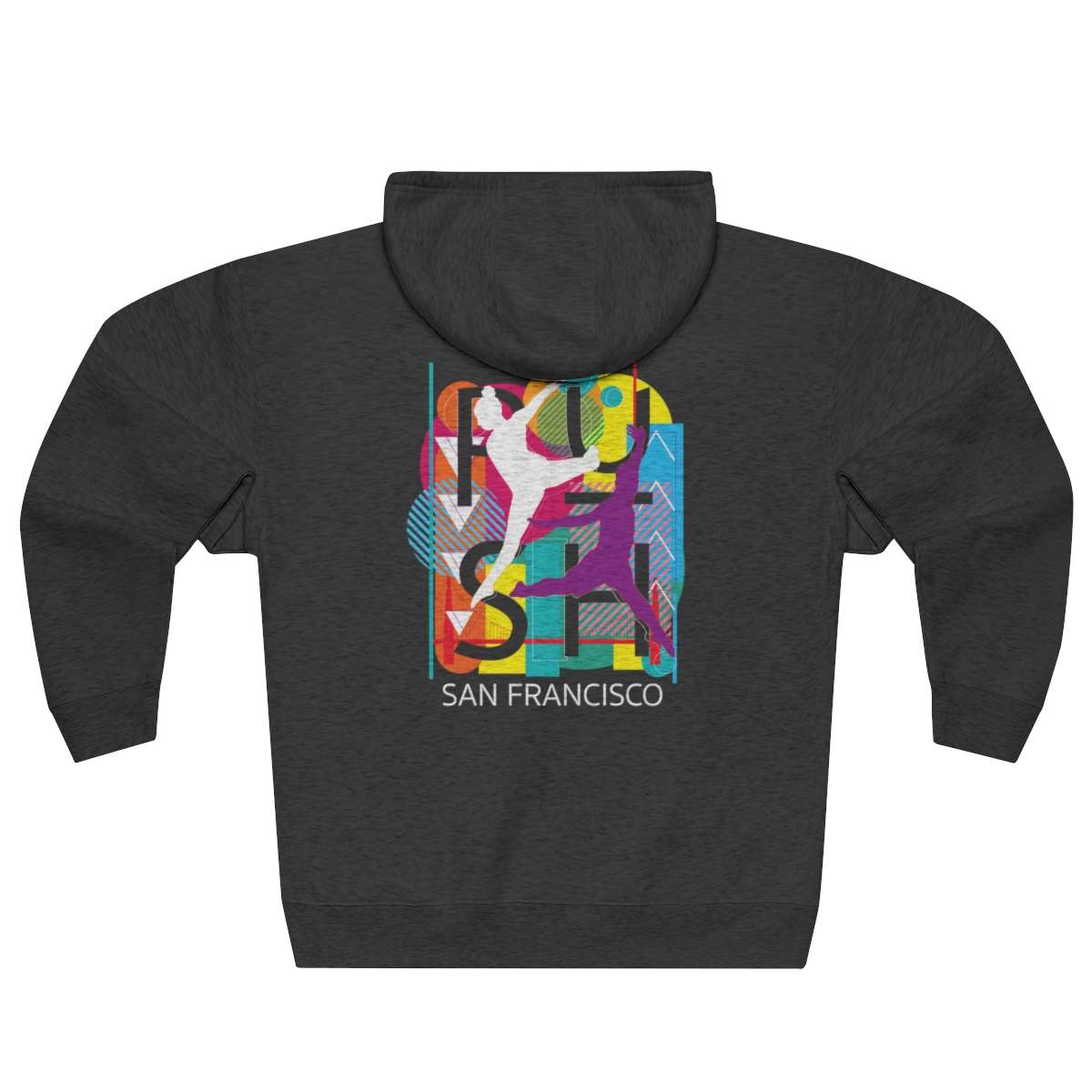 Playfully designed with relaxed fit for warm weather (unzipped) or cold winters. Artist design by Ailene Aihara.
